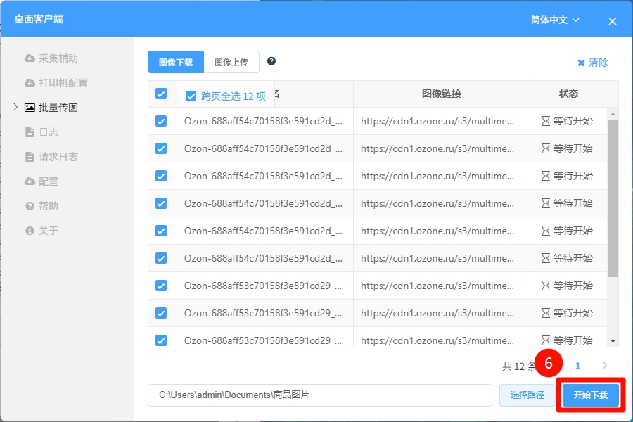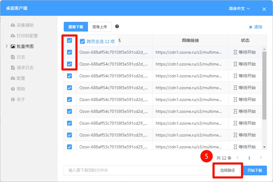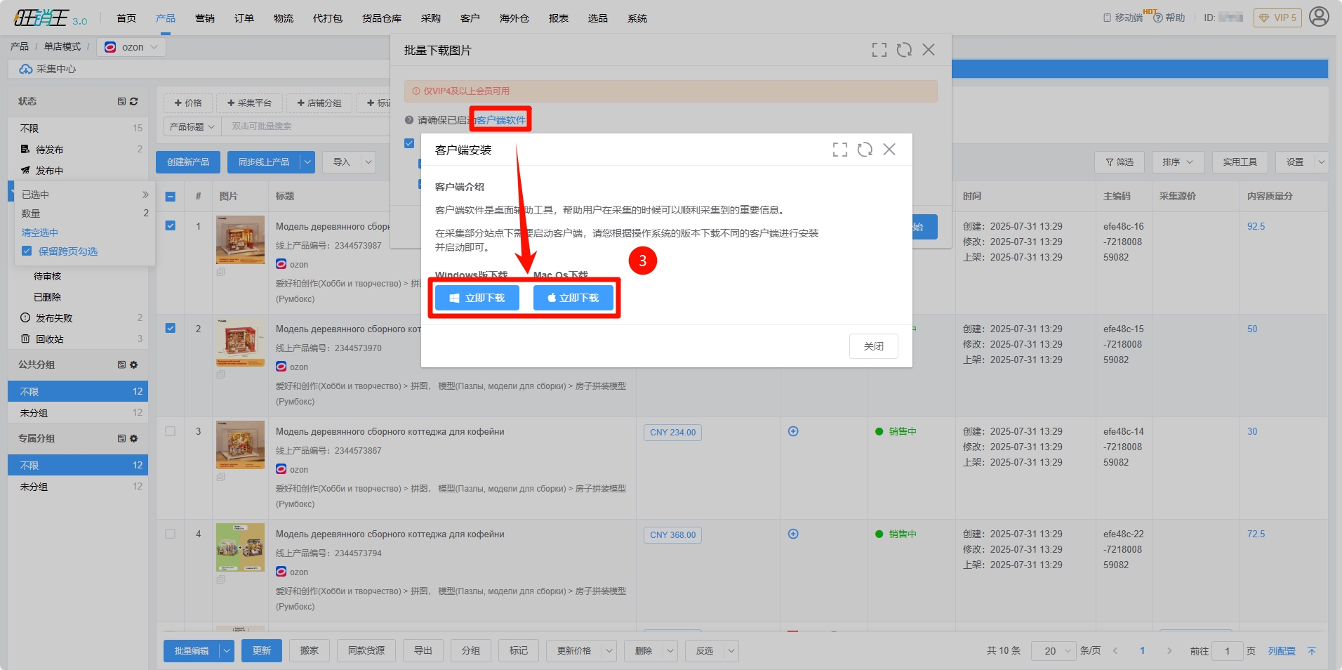 第五步:【进入旺销王客户端——点击批量传图——勾选图片——选择保存路径——点击下载】