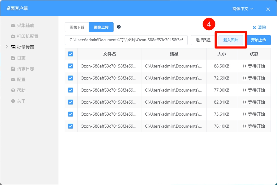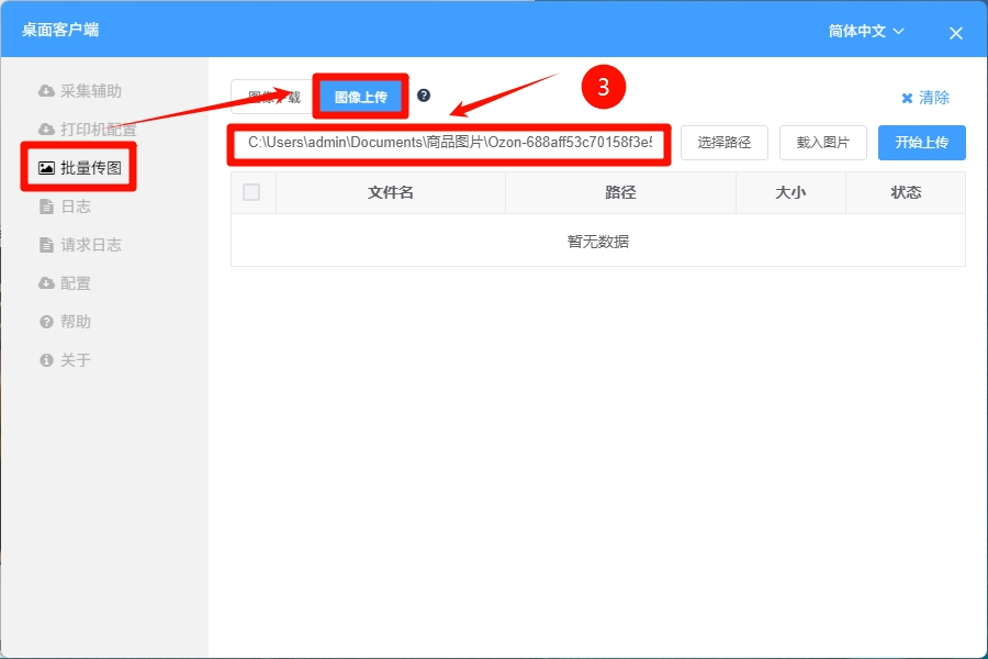第三步:【打开客户端——点击批量传图——黏贴编辑后图片的路径】