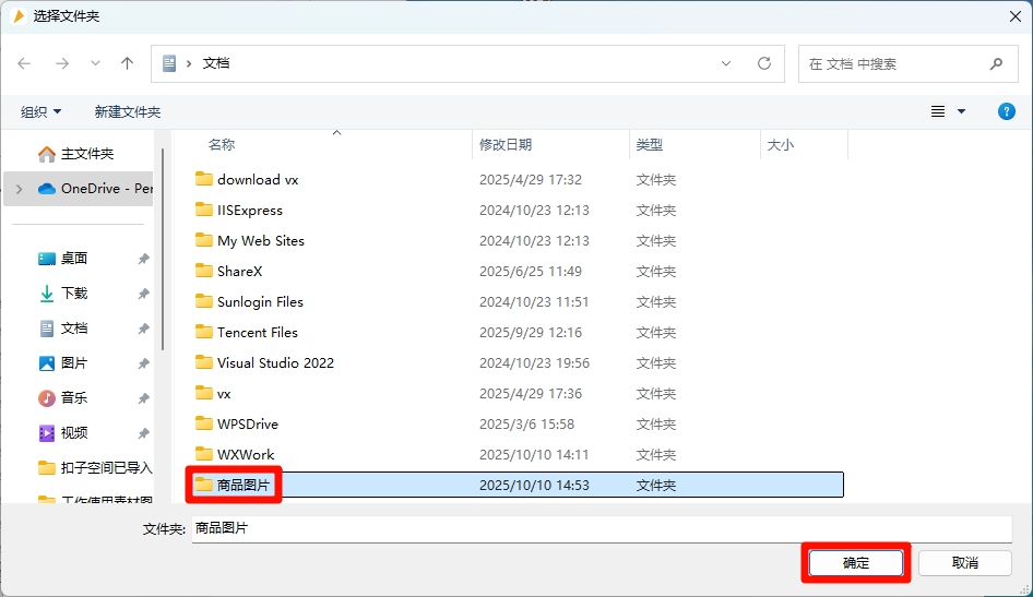 各位商家需要创建一个文件夹或选择一个文件夹作为图片的下载路径,并点击右下角确定。