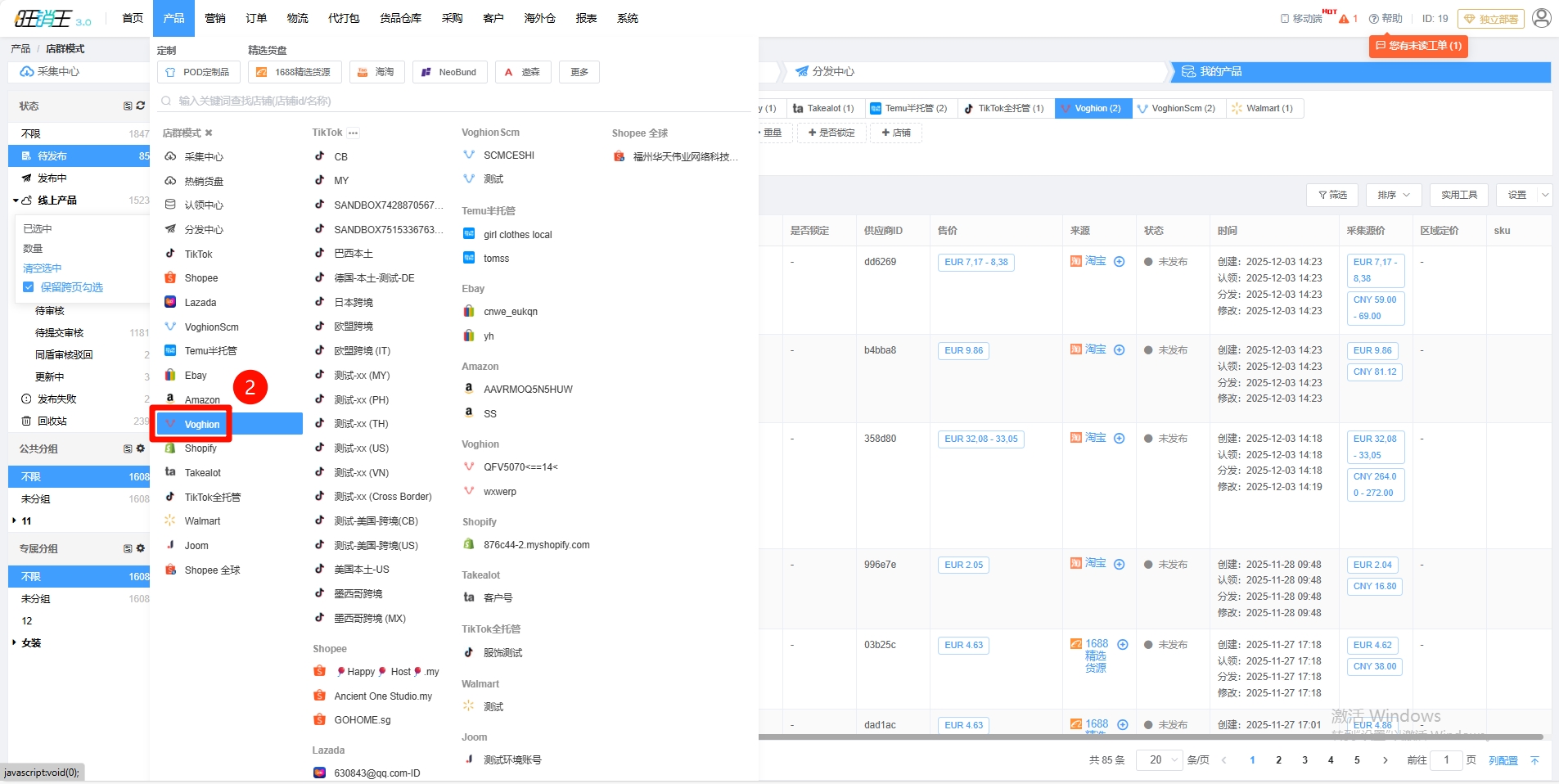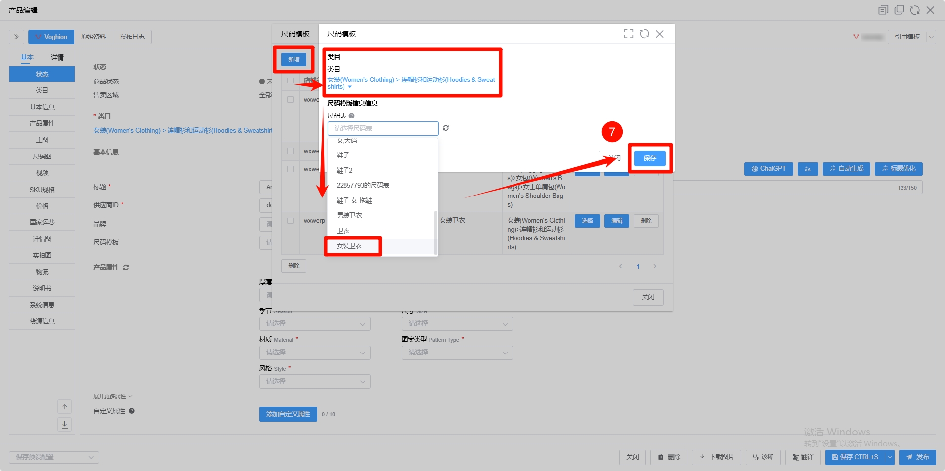 Voghion店群模式如何新增、批量编辑品牌/尺码表