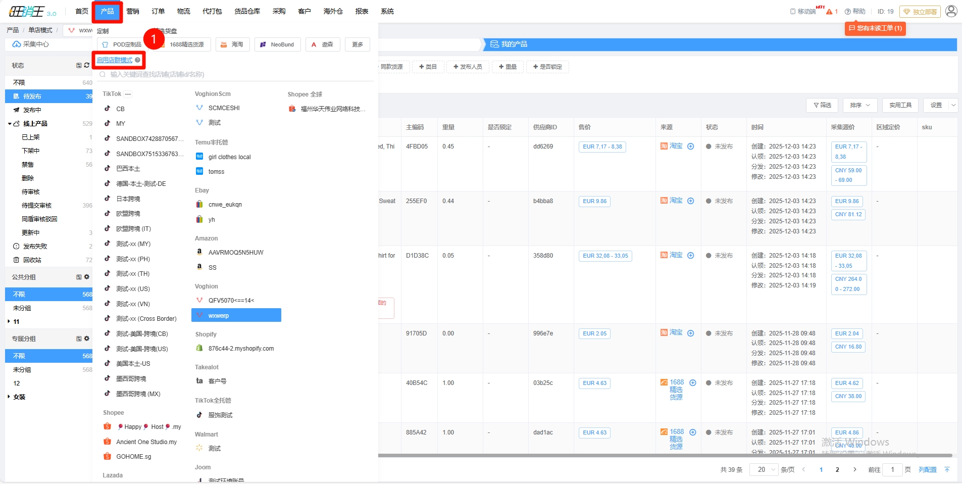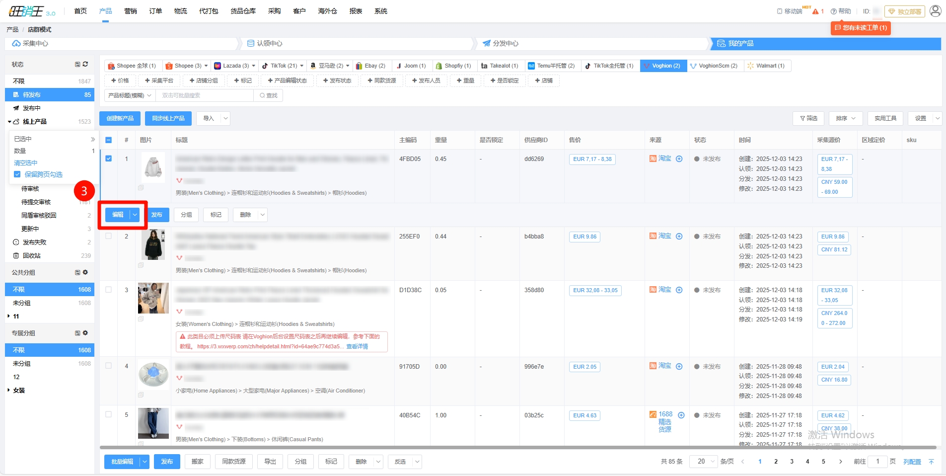 第三步:选择需要进行编辑的产品 -> 点击编辑