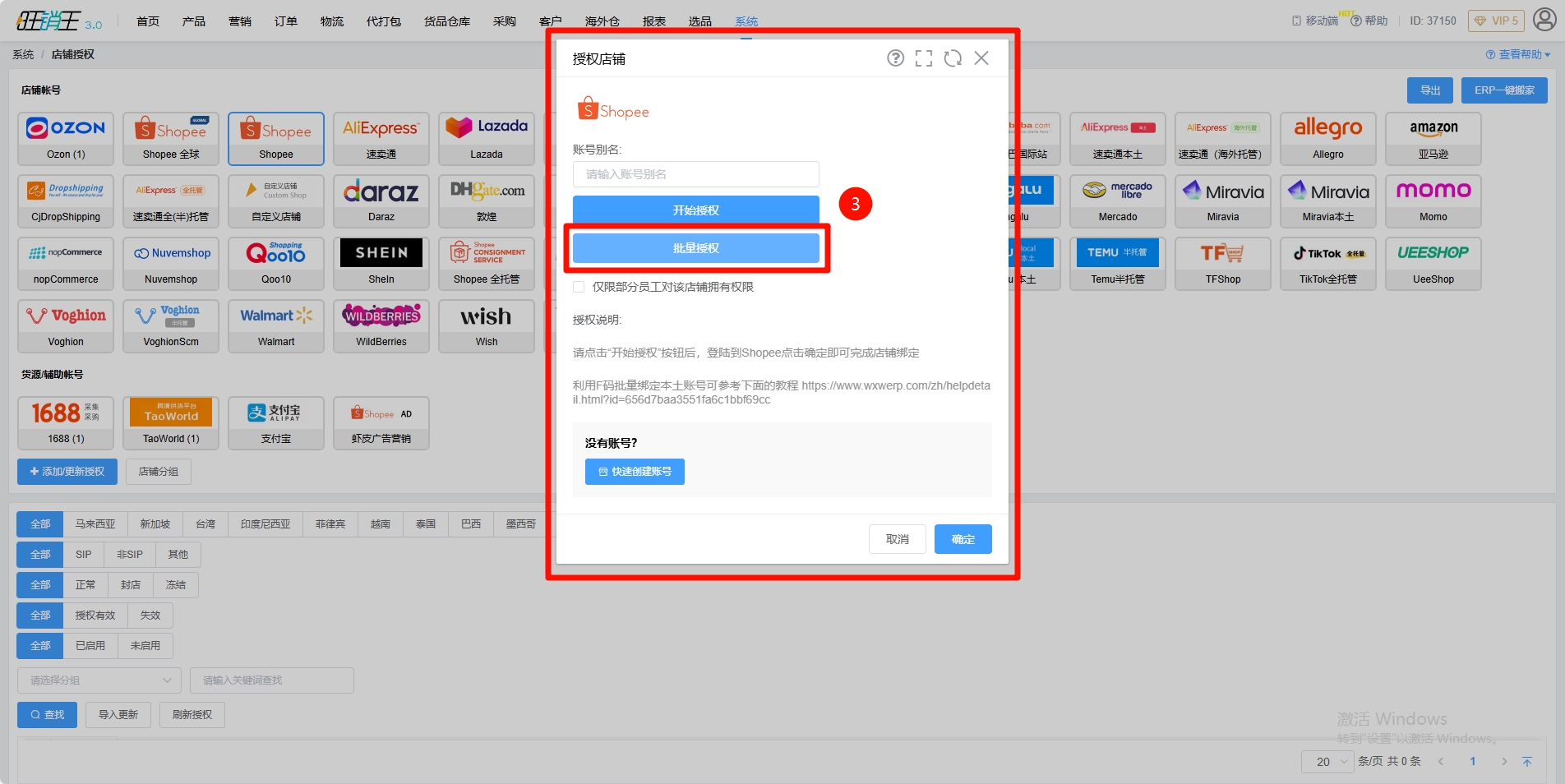 为助力多店铺运营shopee卖家大幅提升效率,旺销王ERP支持 Shopee店铺批量授权。商家们无需再为每个店铺重复繁琐的单个授权流程,可一次性高效完成多个店铺的授权对接。具体操作步骤如下: