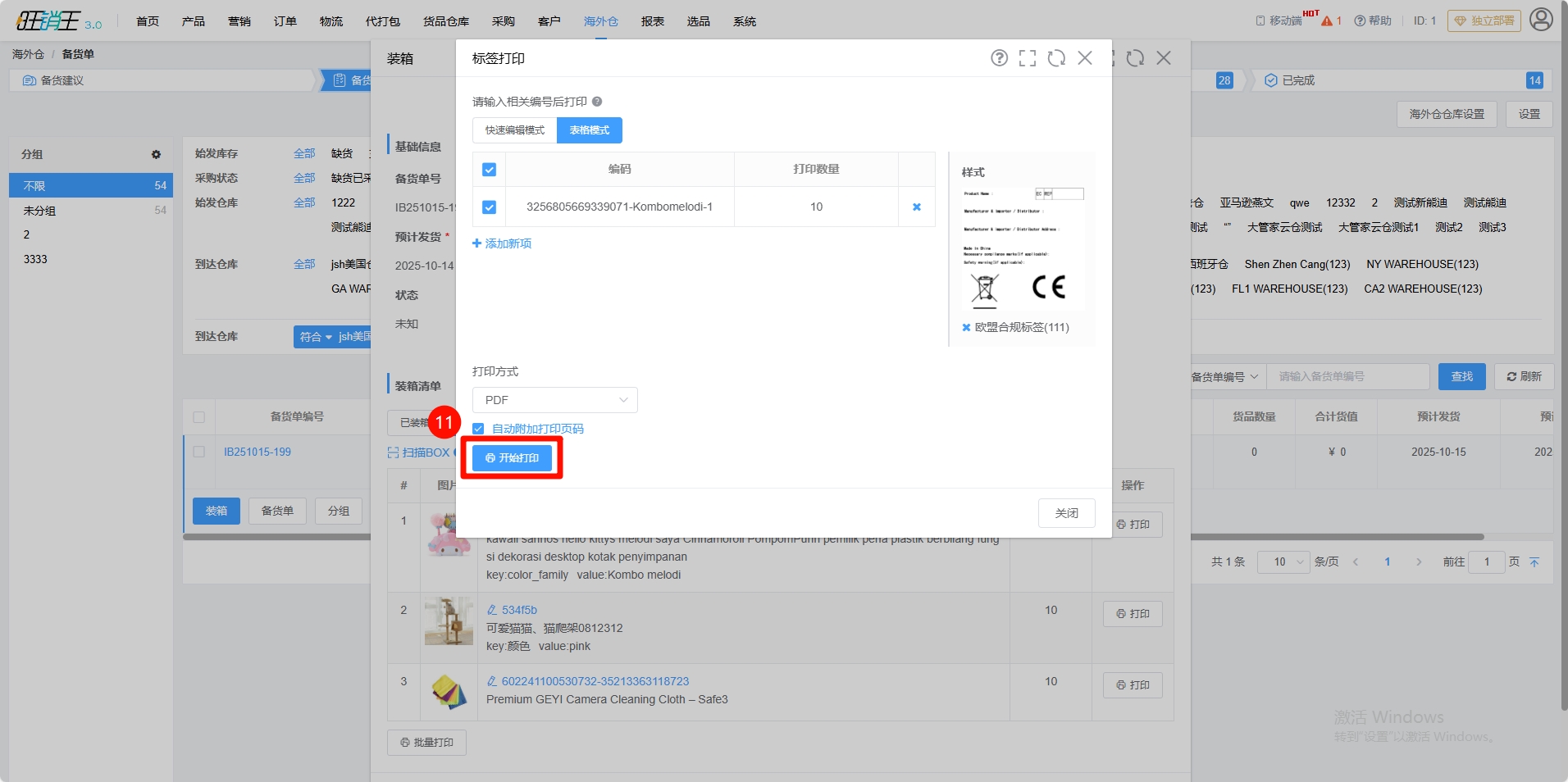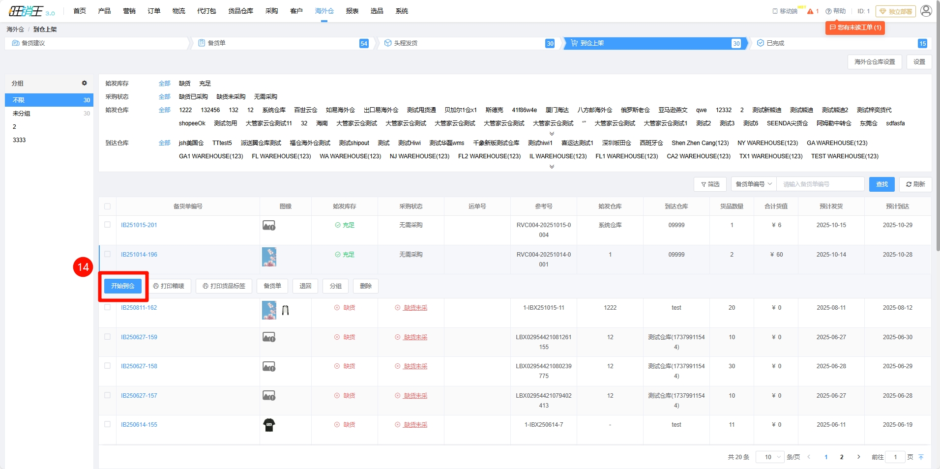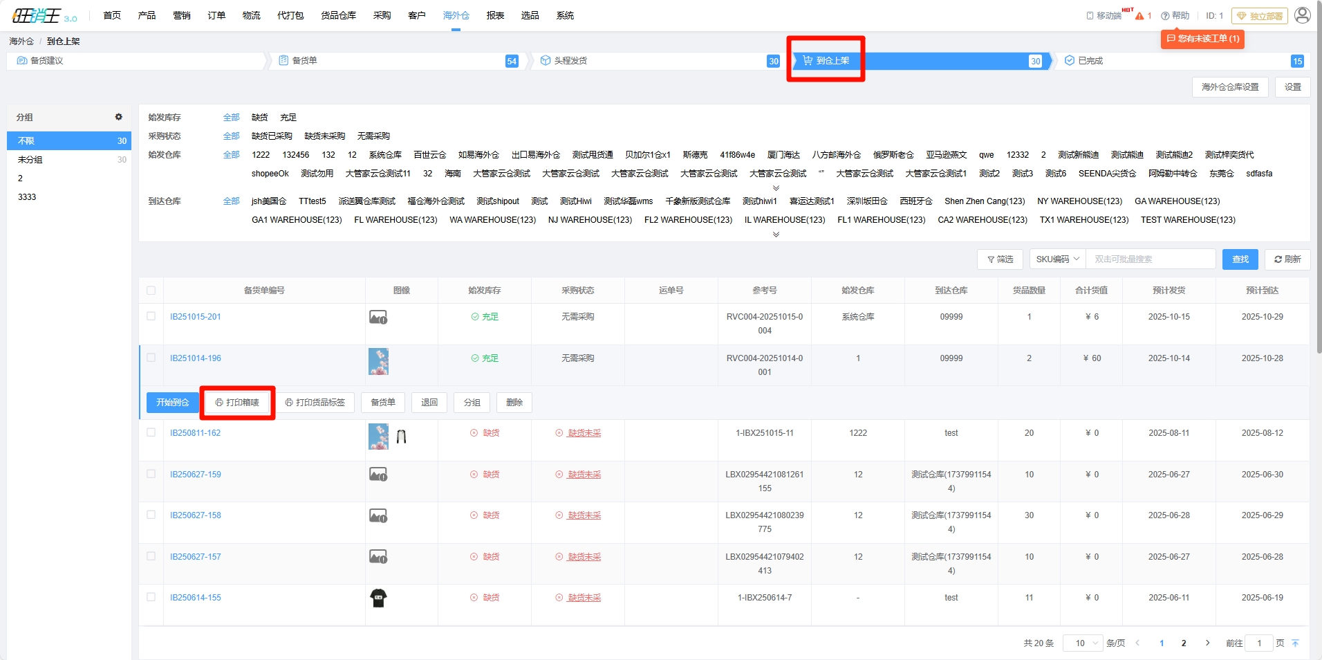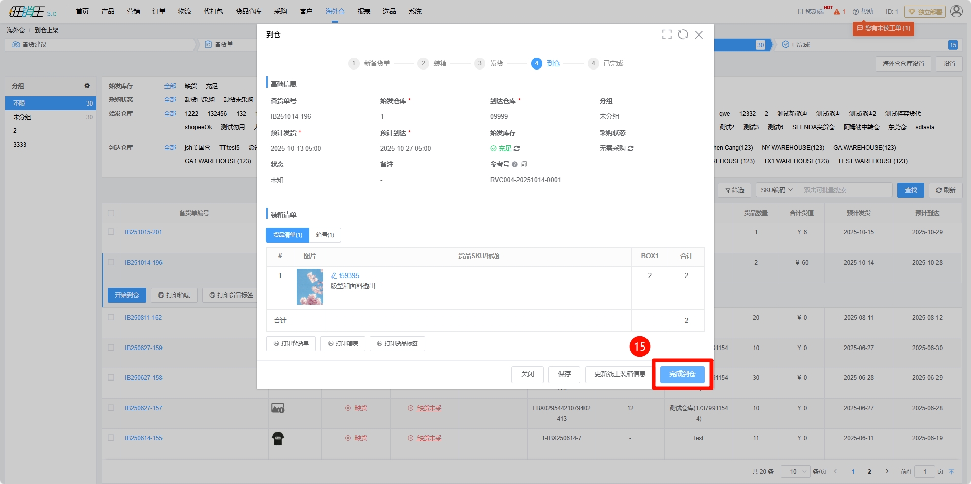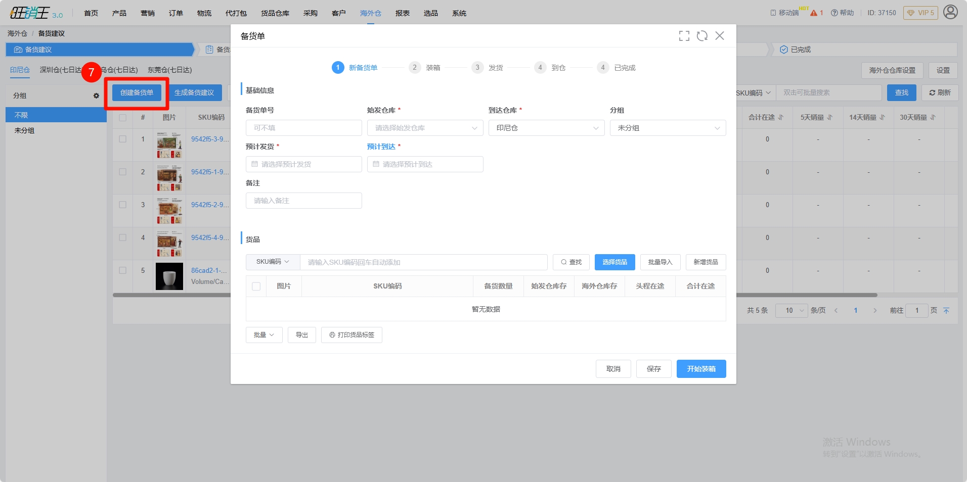 第九步:在上方点击备货单 -> 找到对应备货单 -> 点击装箱
