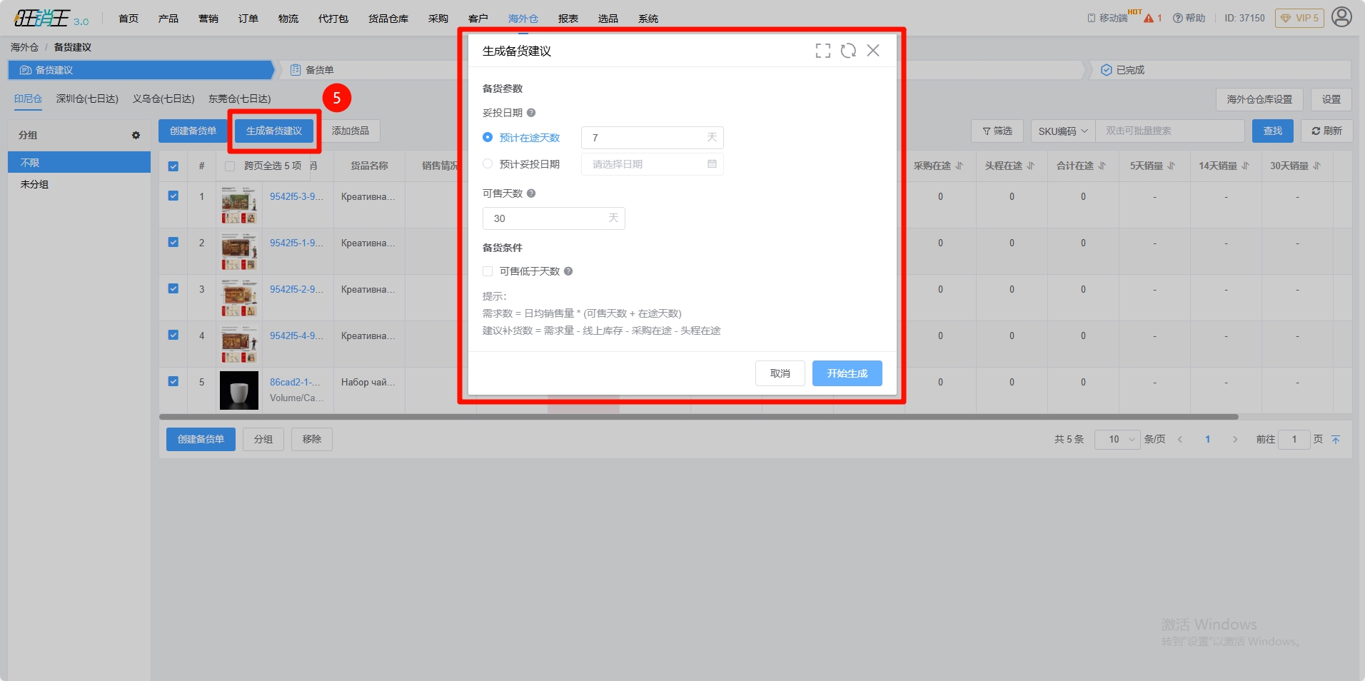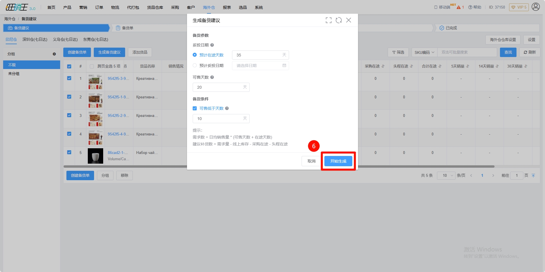 第五步:点击生成备货建议 -> 各位商家根据实际情况填写相关信息