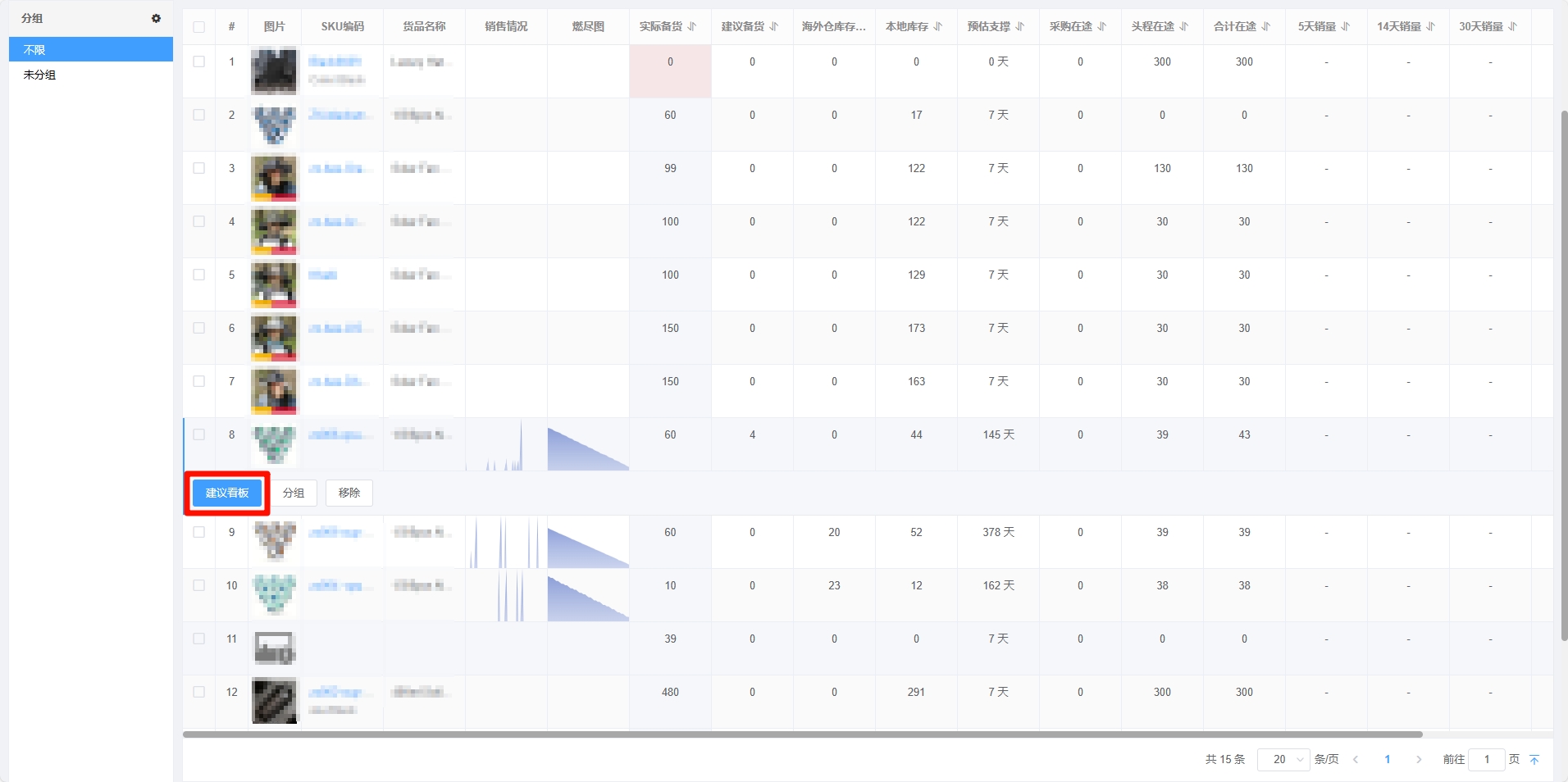 货品导入后,各位商家即可选择相关商品并查看对应产品的建议看板,建议图标如下图所示。