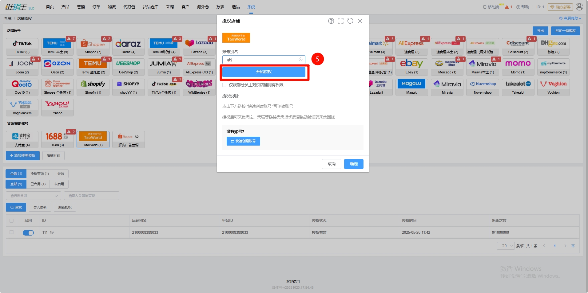 为了帮助各位想要使用旺销王ERP采集TaoWorld的商家,该教程将逐一展示绑定TaoWorld采购账号的具体步骤。具体操作步骤如下: