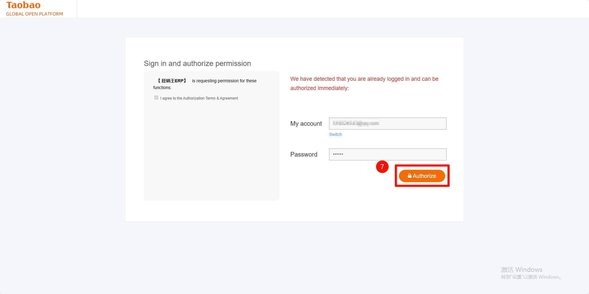 授权完后将后自动返回至授权界面,各位商家可通过下方状态栏查看授权信息。