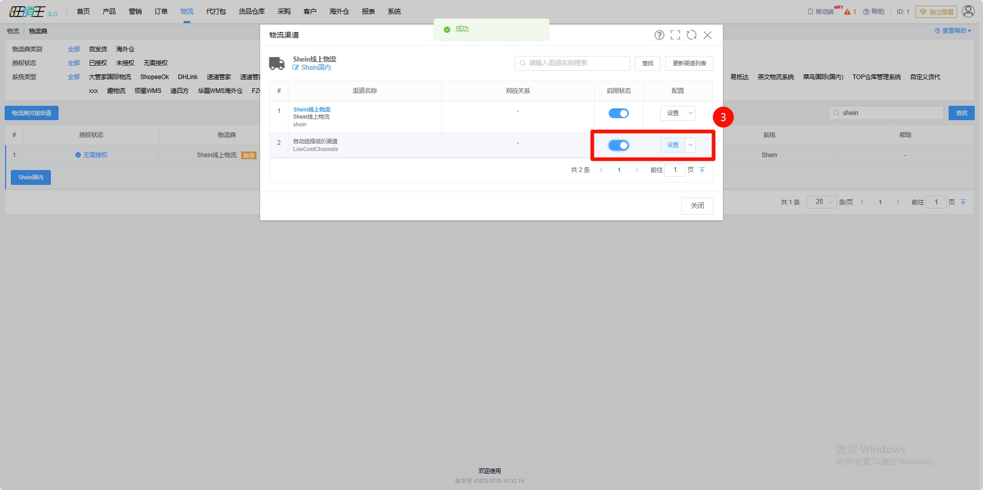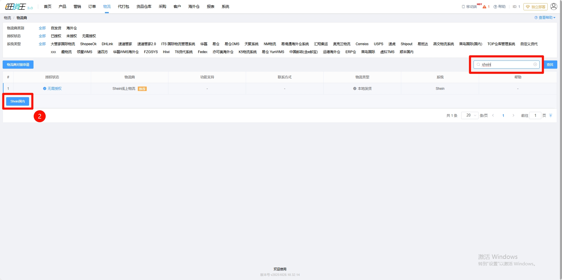 第二步:搜索Shein -> 点击Shein线上物流进行授权