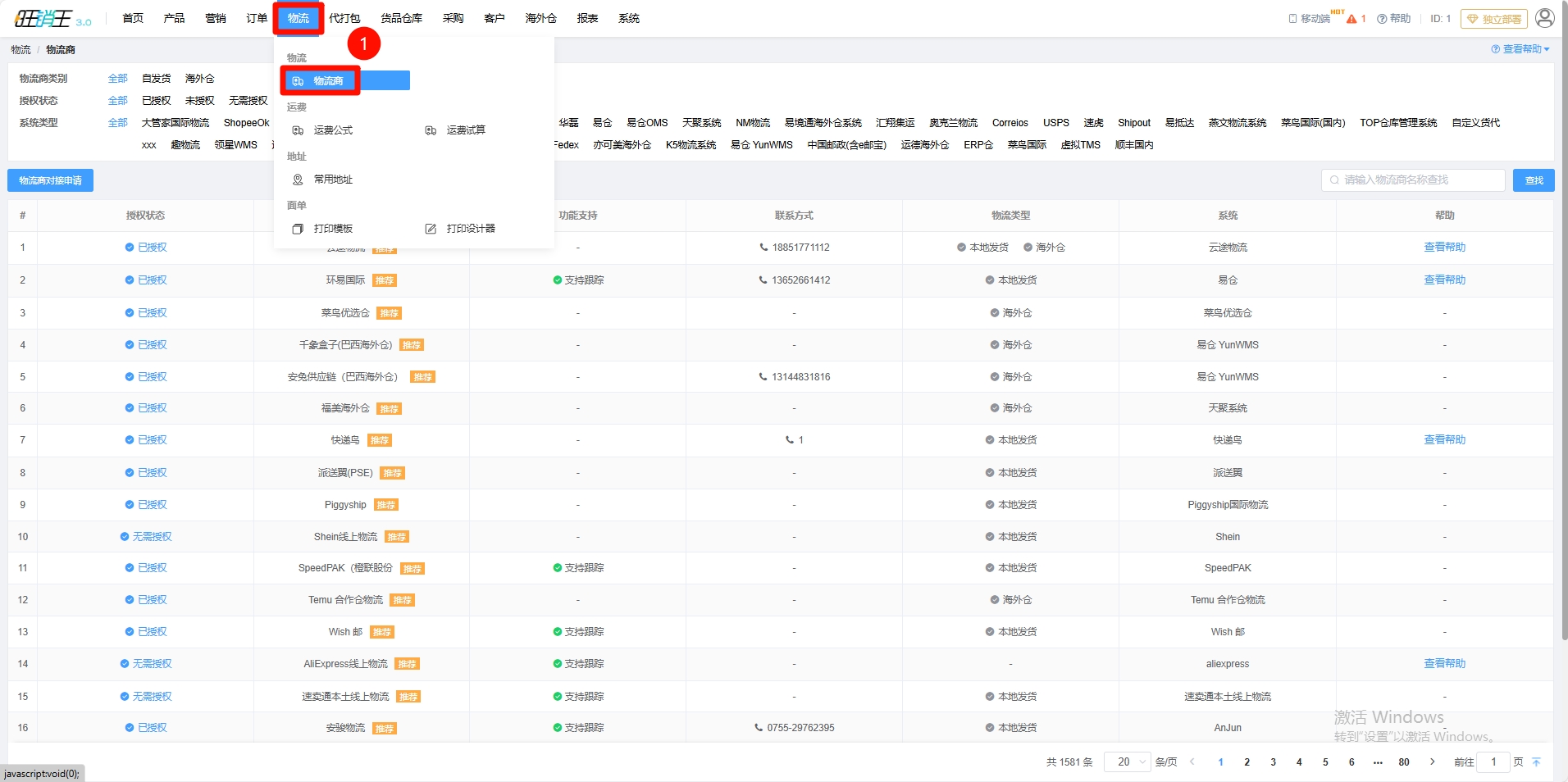 第一步:点击物流 -> 进入物流商