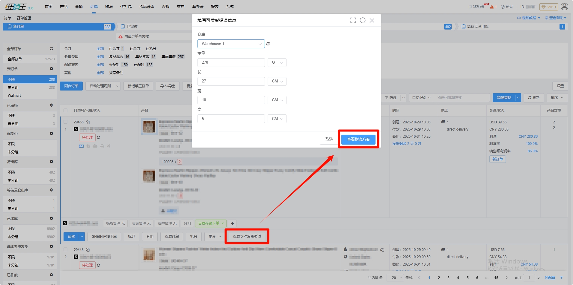 各位商家可以选择对应订单 -> 点击查看支持发货渠道