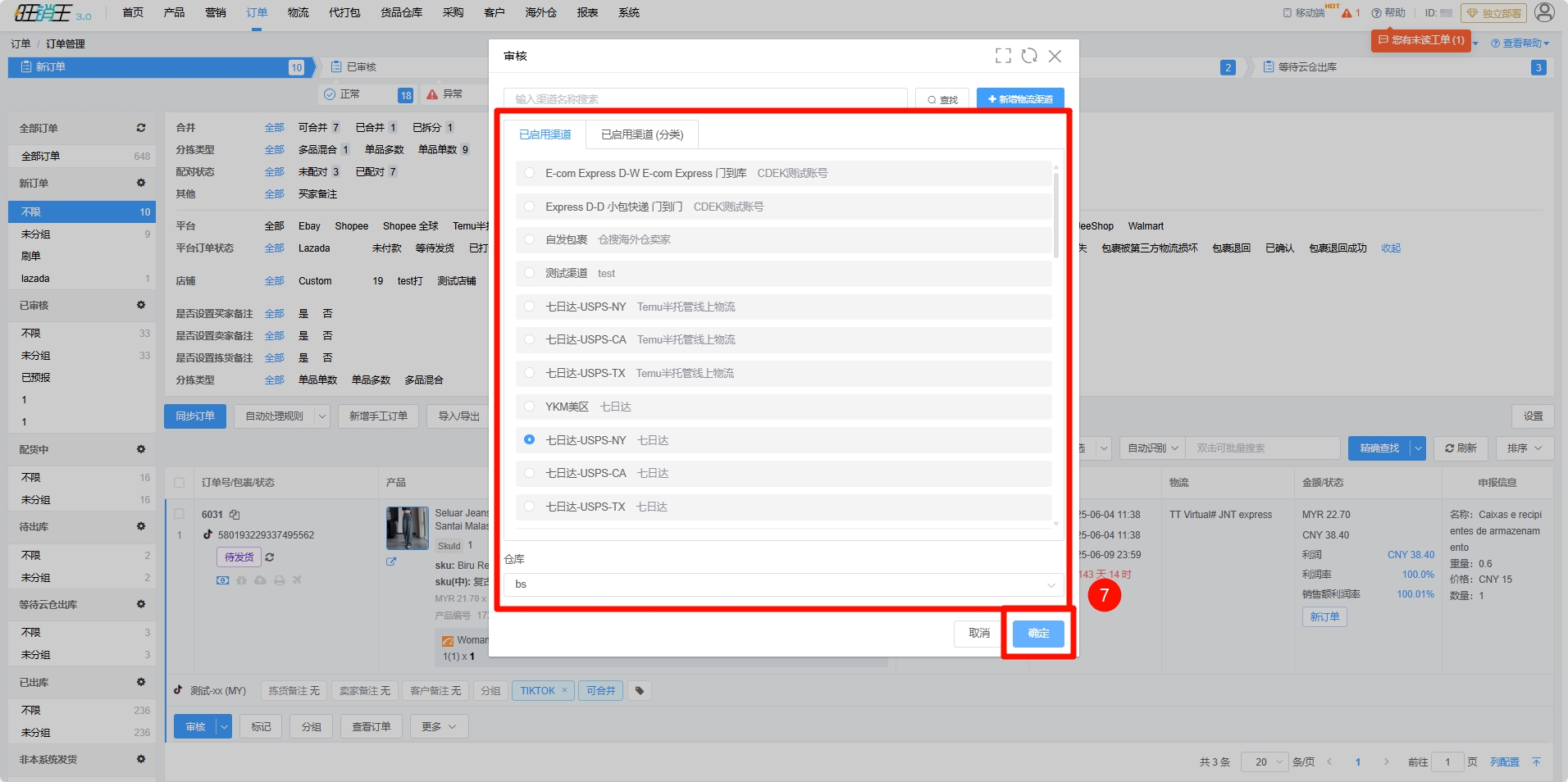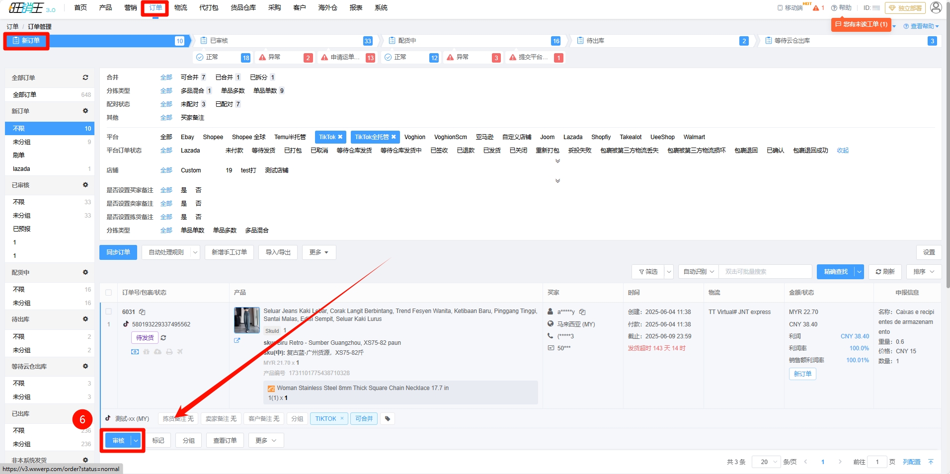 第六步:进入订单 -> 选择对应订单 -> 点击审核