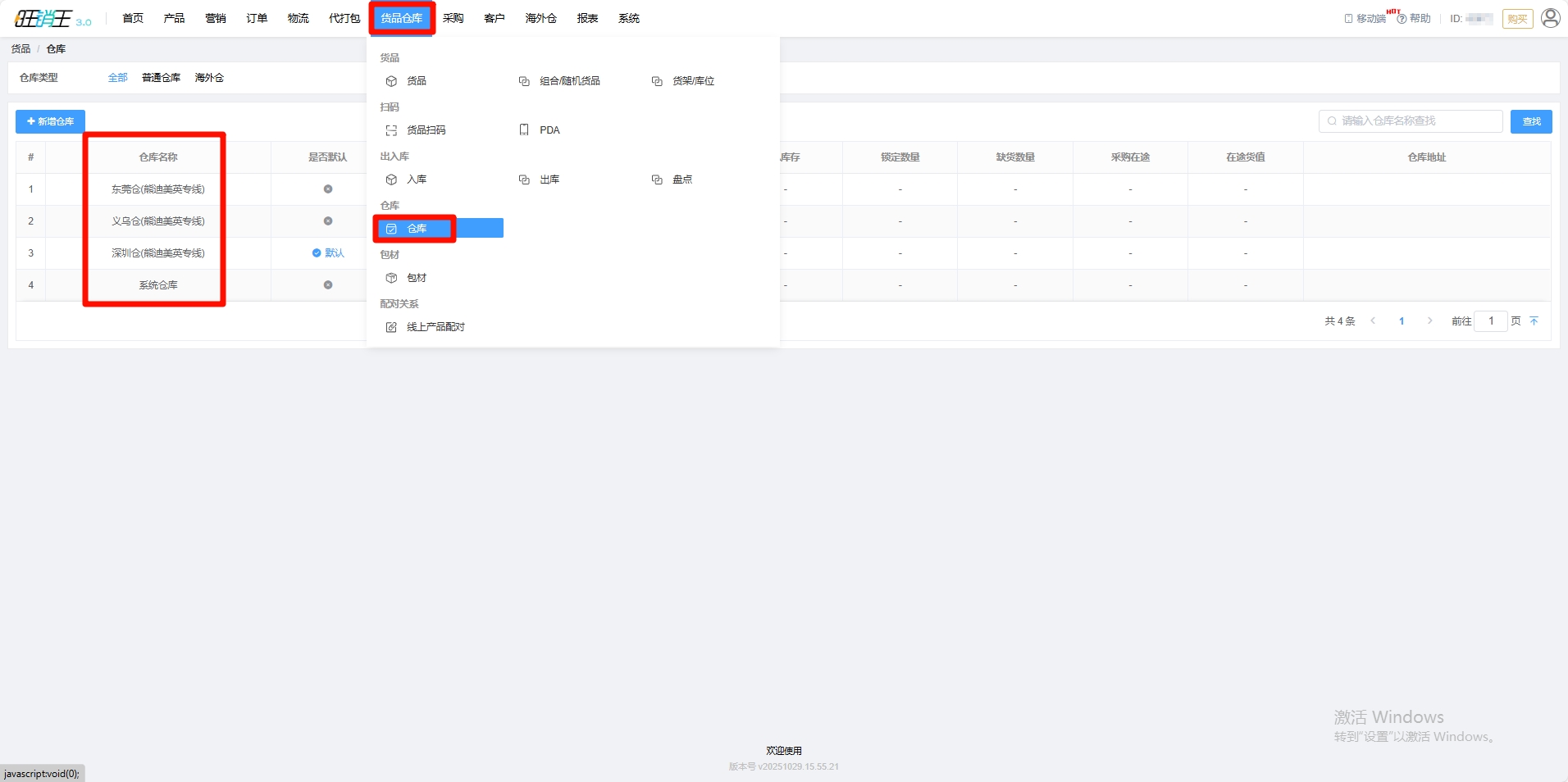 以及帮您新增对应仓库,各位商家可在 货品仓库 -> 仓库 中进行查看