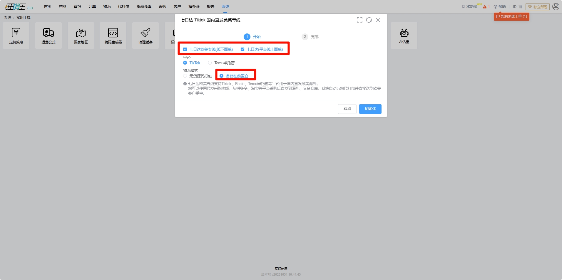 (若店铺为Temu店铺,将在初始化时自动创建审核规则帮您匹配对应的渠道与仓库)