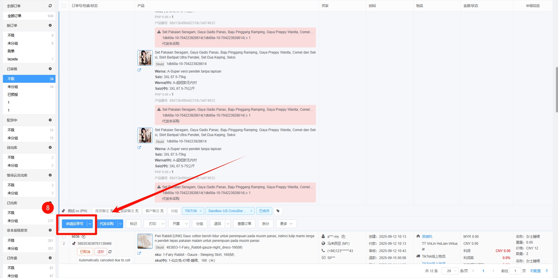 第八步:进入已审核 -> 找到对应订单 -> 点击申请运单号