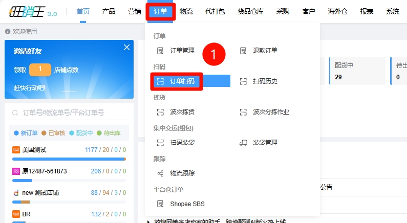 第一步:点击订单 -> 进入订单扫码