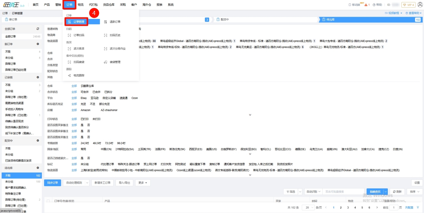 第四步:完成设置后即可点击订单 -> 进入订单管理